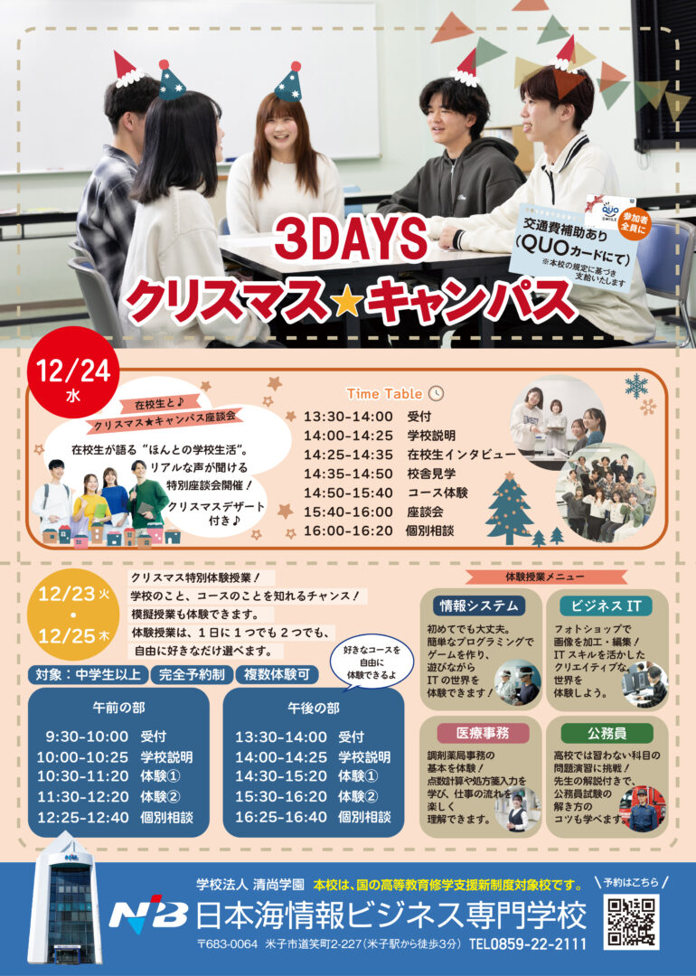 | 11/29(土)午前 | 12/13(土)午前 | 1/17(土)午前 |